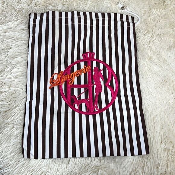Henri Bendel Striped Embroidered Lingerie Dust/Travel Drawstring Bag Black White