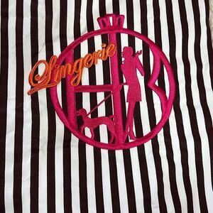 Henri Bendel Striped Embroidered Lingerie Dust/Travel Drawstring Bag Black White