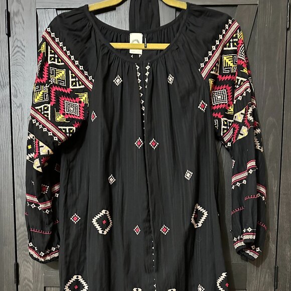 This Henrietta peasant dress encapsulates the carefree spirit of summer. It's elevated with embroidered folksy motifs in colorful shades and has a breezy loose comfortable silhouette