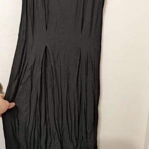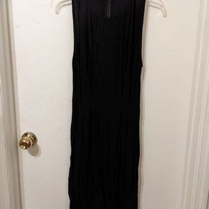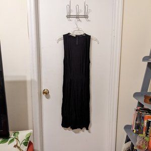 beautiful light gauzy fabric with gorgeous draping at shoulders and gathered tucks at the waist. A sensible LBD with pockets for your next low-key date night or party. Hits just below knee on me at 5' 4".