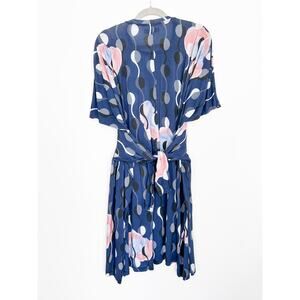 Henrik Viskov Tencel Abstract Pattern Tie Dress One Size Blue Geometric
