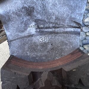 1 3/4" heel. Size 38 fits true, like a US 8.