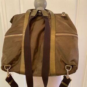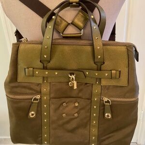 Henry Bendel Taupe 3Way Backpack/Shoulder/Top Handle w/Locket & Purple Interior