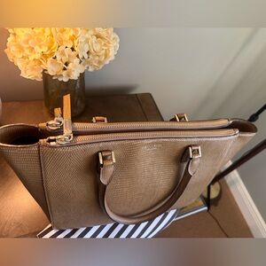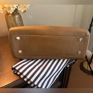 Chic and stylish embossed leather tote by Henry Bendel . Features textured design and sturdy handles. Perfect for daily use.