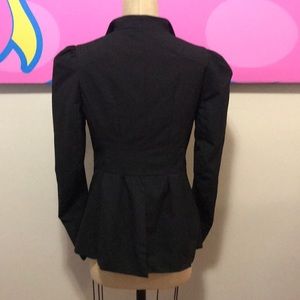 Unique design by Henry Duarte in this black wool gabardine blazer ! Triangle shape buttons - modifies peplum Design in the back and a slit
