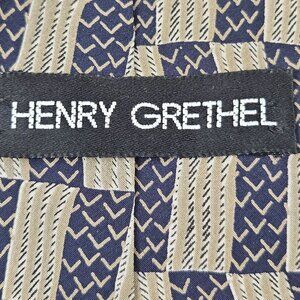 Henry Grethel Mens Tie Italian Silk Tie Geometric Beige Navy Pattern Vintage