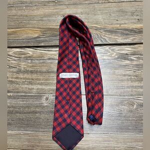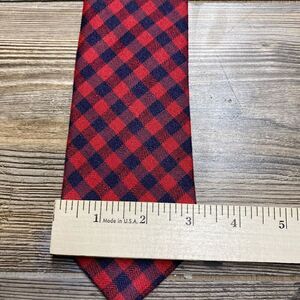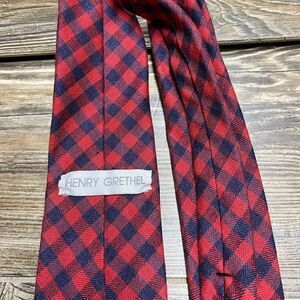 Henry Grethel Men's Tie Italian Silk Red Blue Checkered Pattern