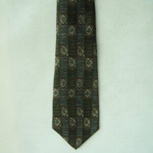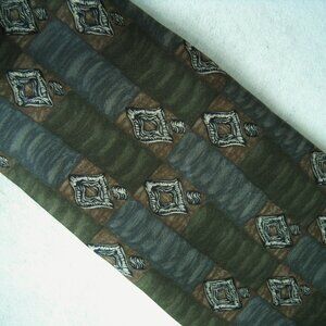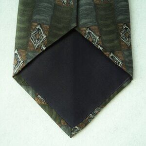 Henry Grethel Olive Green Neck Tie 100% Italian Silk Brown Grey Geometric Stripe