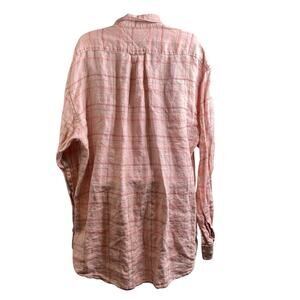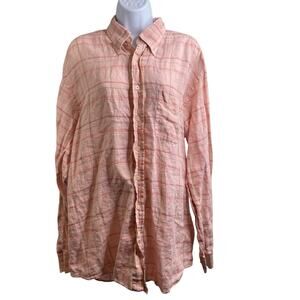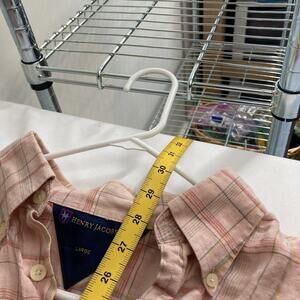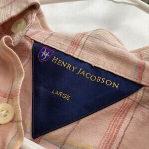 Henry Jacobson Men’s Peach Plaid Linen Button Up Shirt Size L Preppy Old Money