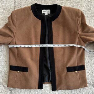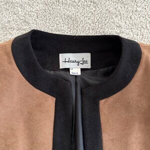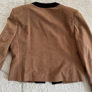 Henry Lee Vintage 70s Tan/Black Faux Suede Open Front Crop Jacket Size 8