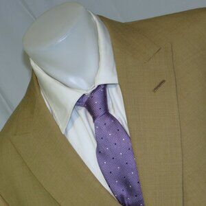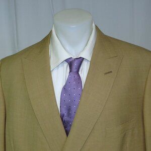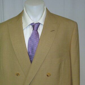 Henry Poole Savile Row Bespoke Beige Hopsack Double Breasted Sport Coat 46R