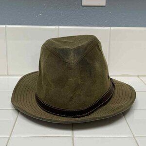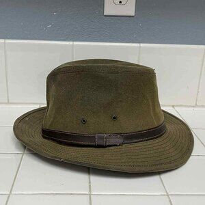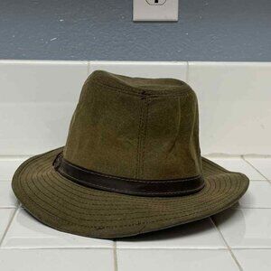 Henschel Hat Co. H1H suede safari hat, size large, color is brown, it has a bit of discoloration on one side otherwise in good condition