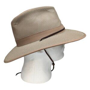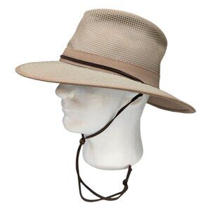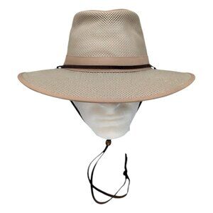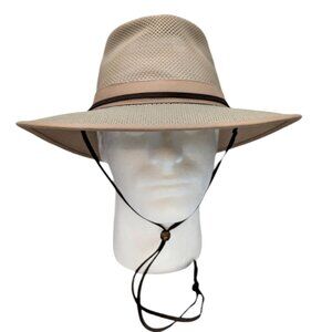 Henschel Hat Co Packable Mesh Aussie Fedora Tan Khaki Brimmed Drawstring Size M