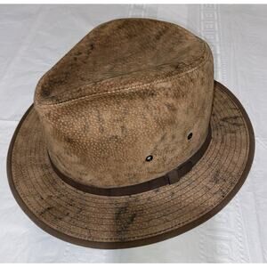 Henschel Hat Company Distressed Leather Safari Hat USA XL Cowboy Vintage