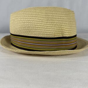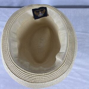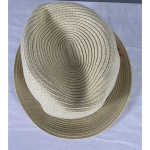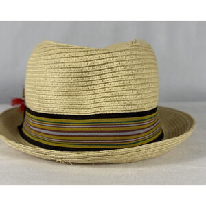 Henschel Medium Natural Straw Fedora Hat With Trim Band Feather USA