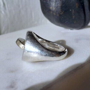 Hand-made diamond and sterling silver signet ring with a flip top -- one side with a diamond and the other smooth silver, designed by Henson, a jewelry designer in Australia.