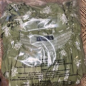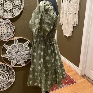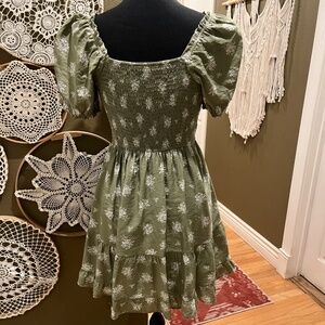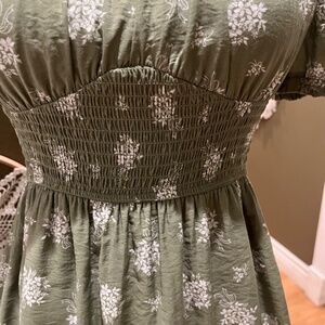 Heperus Green Floral Smocked Puff Sleeve Mini Dress – Size M