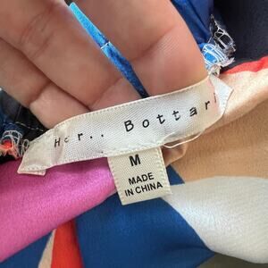 Her.. Bottari wide leg pants featuring a vibrant multicolor abstract tropical print. Designed with an ultra high waist, relaxed silhouette and flowy drape, these pants are lightweight and perfect for resort wear, vacations, or adding a pop of color to your everyday look. Size Medium - 14.25" waist (has some stretch in back), 14.5" rise, 30" inseam.