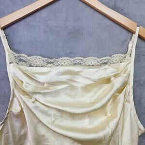 Her Destiny Nightgown Dress Women Large Ivory Satin Slip Ruched Top Pearls Sexy