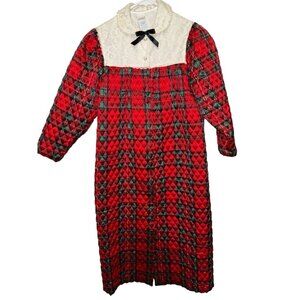 Her Majesty Vintage Girls Robe Quilted Red Plaid Christmas Lace SZ 8