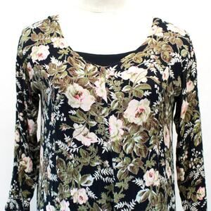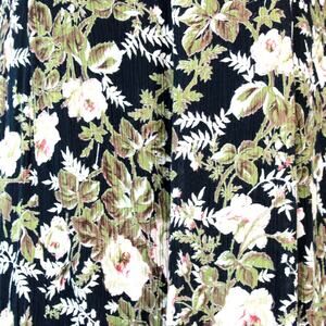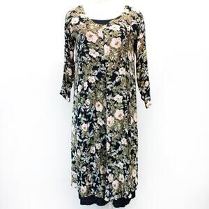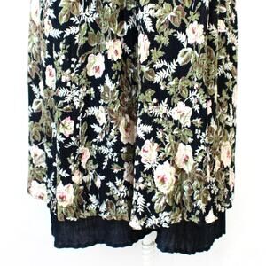 Her Style Vintage 80's Reversible Black Floral Rayon Modest Midi Dress Medium