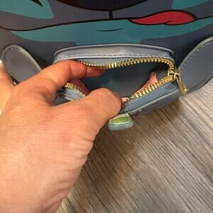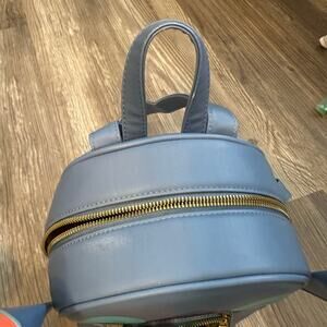 The Her Universe Disney Lilo & Stitch BOBA Mini Backpack is a stylish and functional bag featuring a zip closure, gold-tone hardware accents, and adjustable shoulder straps. The blue exterior with pink lining and 3D ears showcases the beloved character Stitch from Disney's Lilo & Stitch universe. Perfect for travel, parties, or casual outings, this mini backpack also includes a coin purse accessory and interior pockets for organization.