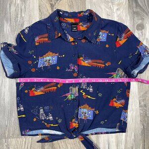 Her Universe Disney Pixar Coco Womens Tie Front Woven Top Small Blue Button Down