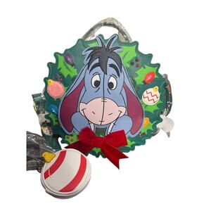 How delightful! You're looking at a brand new with tags Her Universe Eeyore Christmas Light Up Wreath Convertible Crossbody Backpack. This unique bag combines the charm of Eeyore with a festive Christmas wreath design. The wreath lights up, adding a touch of holiday magic.