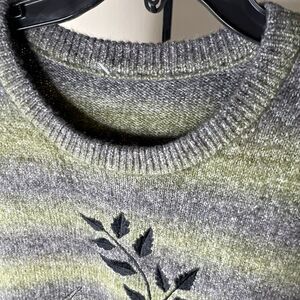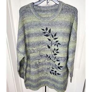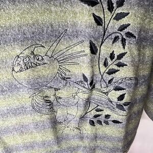 Bundle up for your next dragon ride-- Viking style! This cozy How to Train Your Dragon sweater features an earthy green and grey striped design, with Astrid’s loyal dragon, Stormfly, embroidered on the front surrounded by leaves. Comes in an oversized fit.