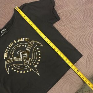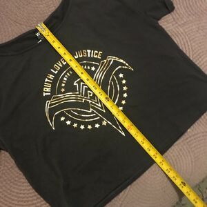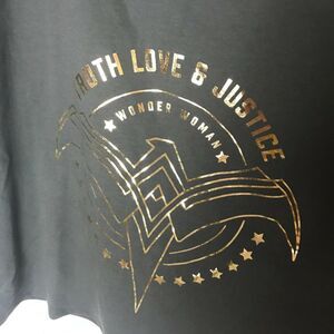 BRAND NEW Her Universe "Wonder Woman 84" short-sleeve lounge top in gray! Features oversized neckline, and gold foil printed graphics with eagle logo. Material is a cotton/spandex blend (light sweatshirt thickness) and is machine washable. New condition. Size is women's junior large.