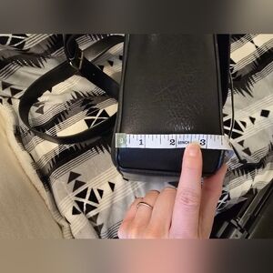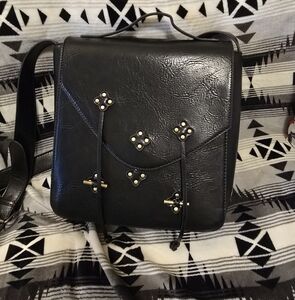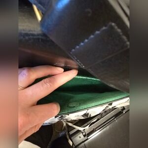 like new, only wore about a week. exterior pocket, green velvet lining. really fun spacious bag.