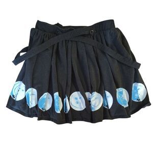 Black mini skirt, with round moon Coraline images, in blue