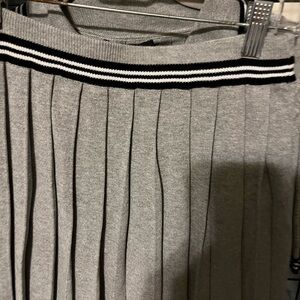 Chic gray ribbed knit top and matching skirt Features classic collar and button details. Perfect for versatile styling. Skirt elastic waist. 12” across unstretched and approx 15.5” long. Top PTP about 14” and about 19” long measured down the back