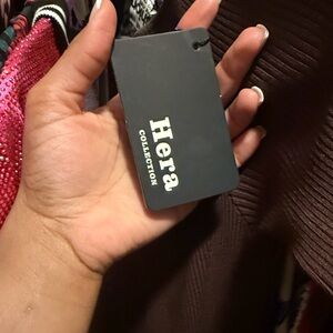 Elegant Hera Collection dress in rich brown. Features textured knit and sleek design. This is a really cute chocolate brown dress size medium but I think you could fit if you’re a small also. It fits kind of tight. I do not have exact measurements.