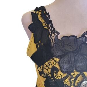 Heramay Korean Yellow Black Lace Applique Bodycon Mini Dress Small Clubwear Sexy