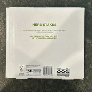 These herb sticks are a fun and useful decoration for your herb garden whether it’s inside or outside! It comes with 4 stakes : Mint, Cilantro, Parsley, and Basil.