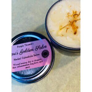 The Calendula All Natural Healing Salve (Mari's Golden Salve) is formulated to help soothe, moisturize, and feed your skin the abilities to help it heal faster. The all natural healing properties from the calendula, frankincense, nettle, and dandelion extract mix together to form a balance all-purpose skin healing salve. From bug bites, sunburns, and more, this handmade salve can help soothe whatever skin irritations nature throws your way. The beautiful scents from the geranium, tea tree, and frankincense essential oil help add to the salve’s skin healing properties while offering a warm and soothing aroma.