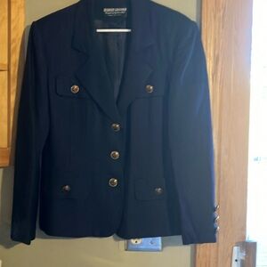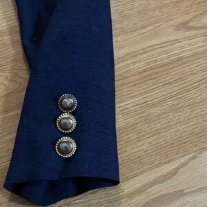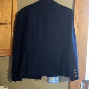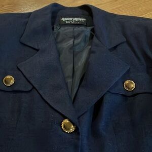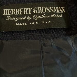 Herbert Grossman By Cynthia Sobel Blazer Women’s Size 16. Has black lining, decorative gold buttons, open front, shoulder pads, false pockets. Add a touch of class to any outfit. Made in USA! Pit to pit approximately 24”, approximately 24.5” sleeve length from shoulder to hem and 26.5”where collar meets garment to hem.