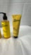 Here Beautiful skincare set includes a clay detox face mask, priming moisturizer, sleeping repair night cream, and daily facial cleanser. Vibrant yellow packaging.