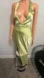 Here Comes The Sun Olive Green Satin Deep V Neck, Open Back Dress- Size Large