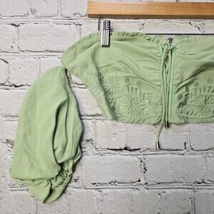 Herencia Collection Green Bustier Crop Top Puff Sleeve Embroidered Detail Size Medium