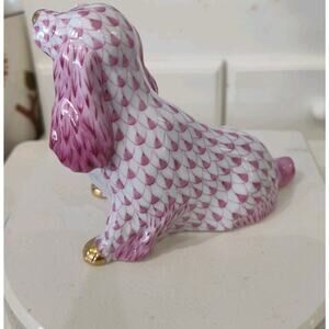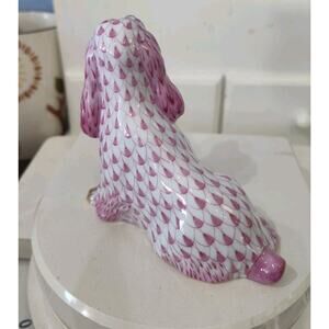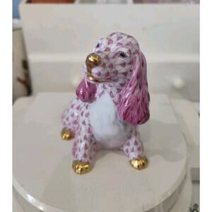Herend Hungary Porcelain Sitting Spaniel Dog In Pink Fishnet First Edition 15455