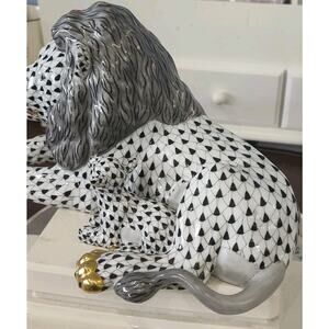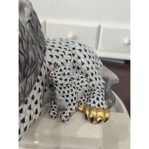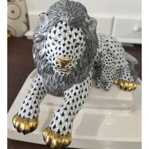 Herend "Kingdom Classic" 2002 Lion and Lamb Black Fishnet Pristine Gold Accents