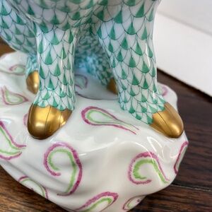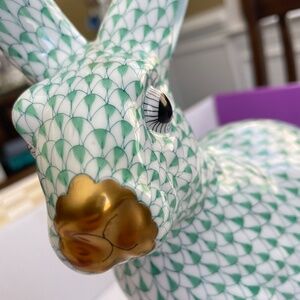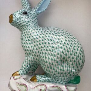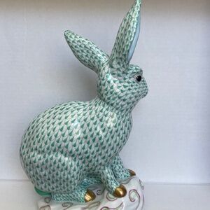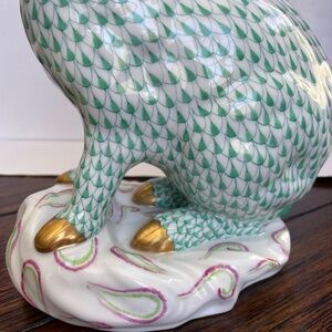 Large hand painted green fishnet pattern Herend rabbit on base. Made in Hungary.