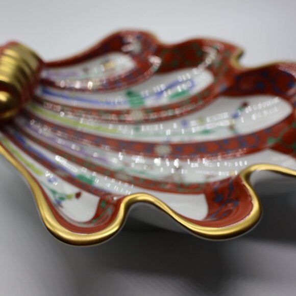 Herend Red Dynasty Siang Rouge Godollo Scalloped Shell Dish - Gorgeous