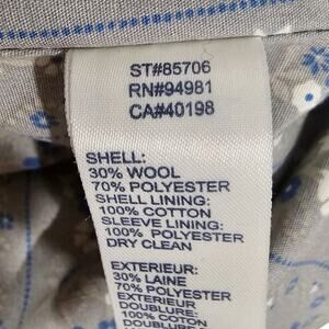 Heritage 1981 Plaid Wool Blend Jacket in Gray / Blue. Size M / Medium. Features collar, hood, long sleeves, front button closure, chest welt pockets, side flap pockets, and plaid print. Style 85706. Shell: 30% Wool, 70% Polyester. Shell Lining: 100% Cotton. Sleeve Lining: 100% Polyester. Excellent pre-owned condition, no flaws.