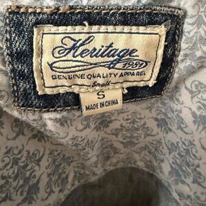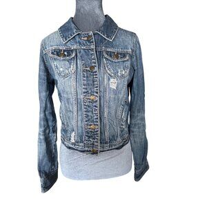 Heritage 1981 Womens Distressed Blue Denim Jacket Size S With Button Closures &