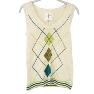 Heritage 1981 Womens Fall Preppy Rabbit Hair Blend Argyle Knit Sweater Vest in Cream. Size Small.