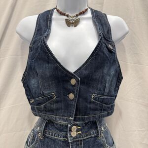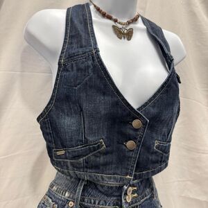 Heritage 1981 Y2K Grunge Denim Vest Dark Wash Cropped Button Front Women's Small