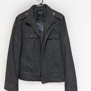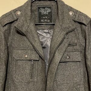 Heritage 1981 gray jacket. Sz medium. Quality tailored stitching. Fully lined . Almost new. Missing one button at bottom.